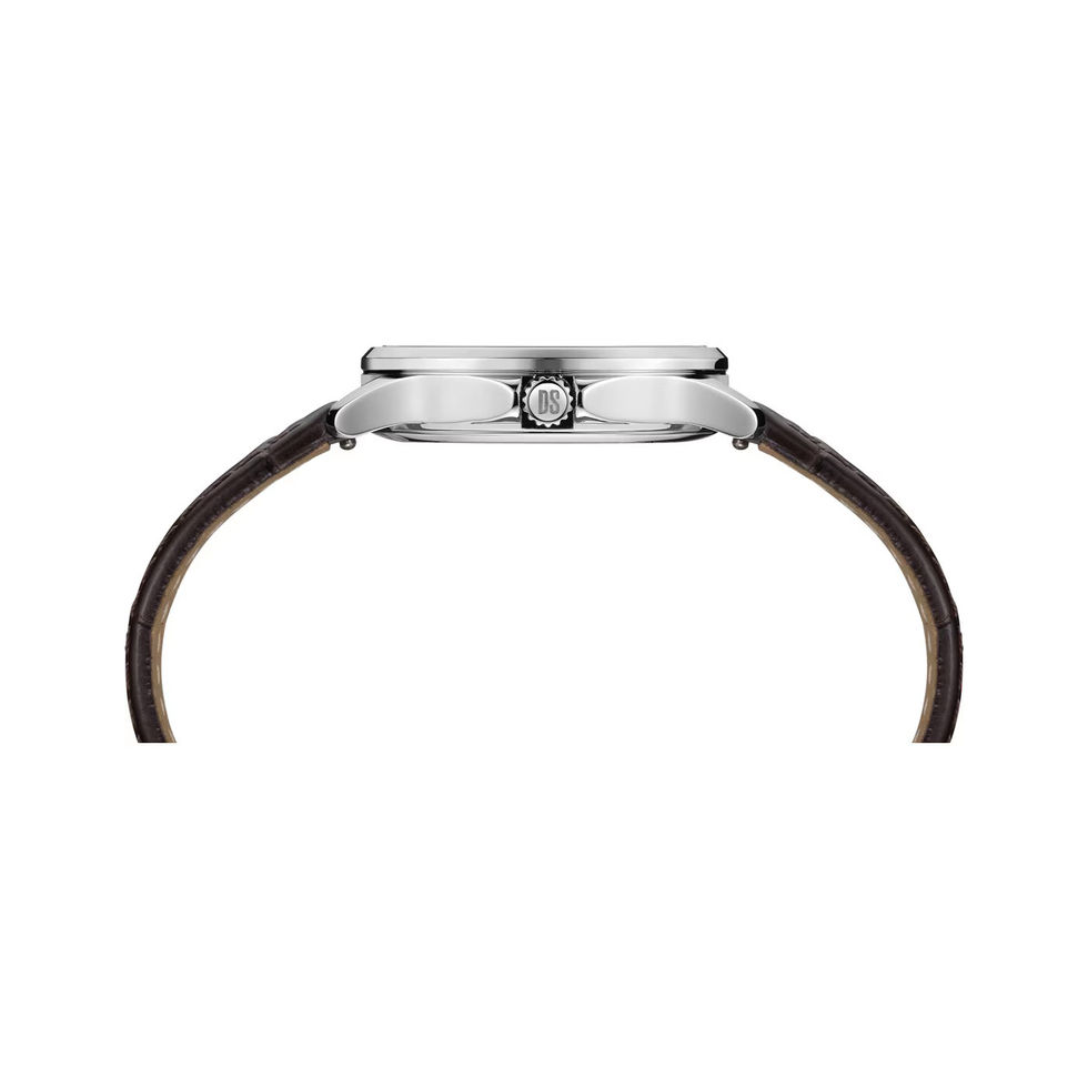 Damenarmbanduhr Certina DS-8, Edelstahl 316L Ø 31.00mm, Höhe 7.95mm, Saphirglas, Quarz ETA F03.412, Zifferblatt Perlmutt weiss mit gelben Indexen, Lederarmband schwarz, Dornschliesse, Datum 6H, Wasserdicht 100m